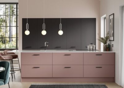 Linear Avant’s base cabinet doors and drawers have a gently chamfered top edge in a range of on-trend matt colours or sensational gloss finishes that will add an extra dimension to your kitchen design.